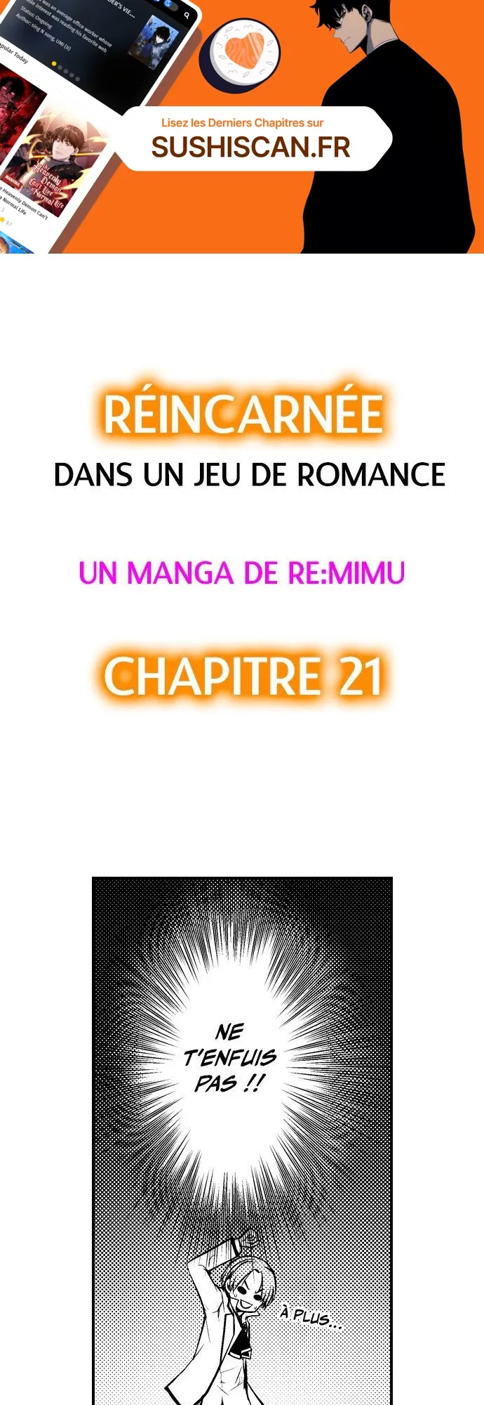 Lisez le dernier manga Réincarnée dans un jeu de romance Chapitre 21 sur SushiScan. Le manga Réincarnée dans un jeu de romance est toujours mis à jour sur SushiScan. N'oubliez pas de lire les autres mises à jour de manga. Une liste de collections de manga SushiScan se trouve dans le menu Liste de manga.