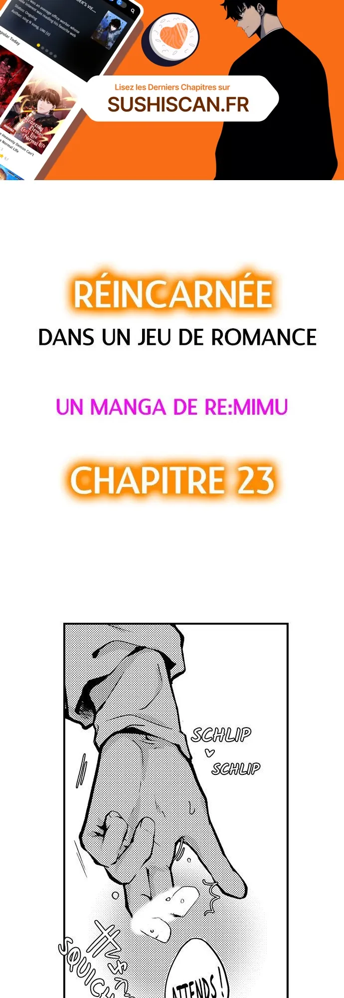 Lisez le dernier manga Réincarnée dans un jeu de romance Chapitre 23 sur SushiScan. Le manga Réincarnée dans un jeu de romance est toujours mis à jour sur SushiScan. N'oubliez pas de lire les autres mises à jour de manga. Une liste de collections de manga SushiScan se trouve dans le menu Liste de manga.