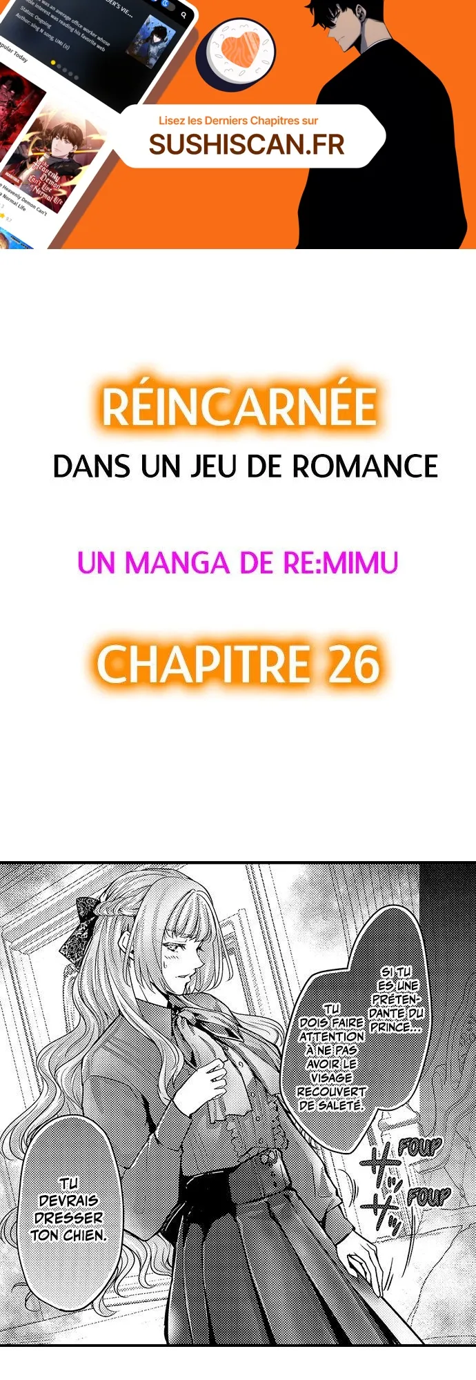 Lisez le dernier manga Réincarnée dans un jeu de romance Chapitre 26 sur SushiScan. Le manga Réincarnée dans un jeu de romance est toujours mis à jour sur SushiScan. N'oubliez pas de lire les autres mises à jour de manga. Une liste de collections de manga SushiScan se trouve dans le menu Liste de manga.