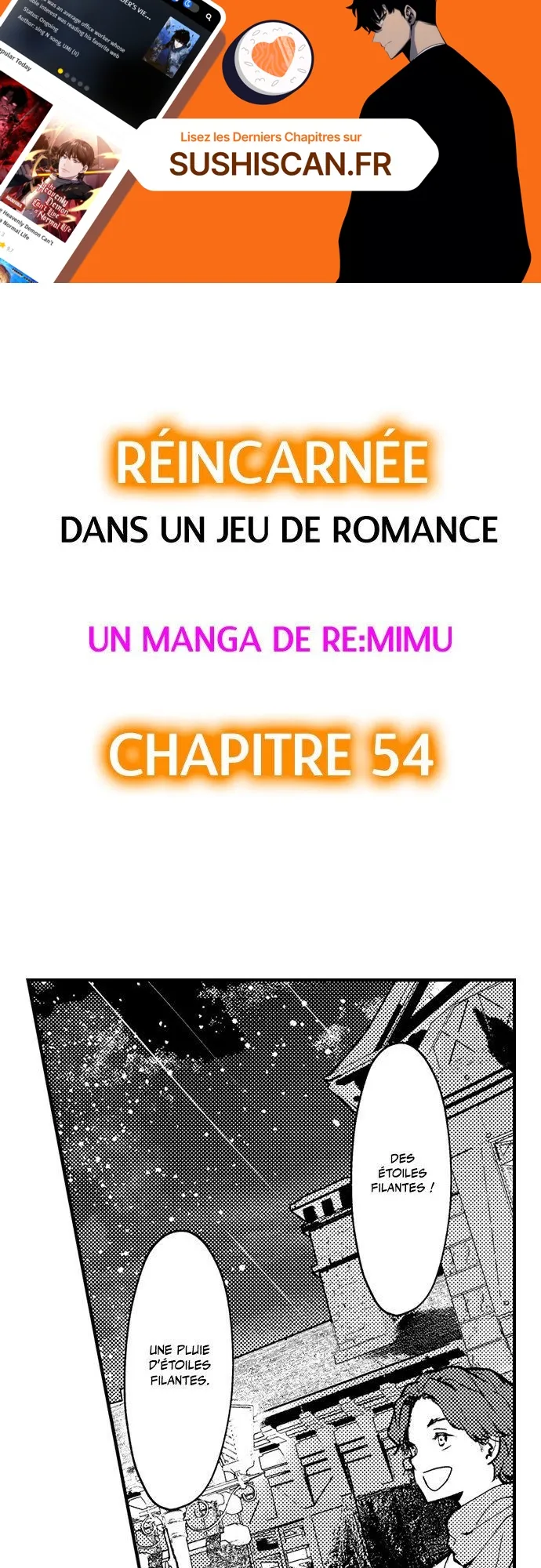 Lisez le dernier manga Réincarnée dans un jeu de romance Chapitre 54 sur SushiScan. Le manga Réincarnée dans un jeu de romance est toujours mis à jour sur SushiScan. N'oubliez pas de lire les autres mises à jour de manga. Une liste de collections de manga SushiScan se trouve dans le menu Liste de manga.