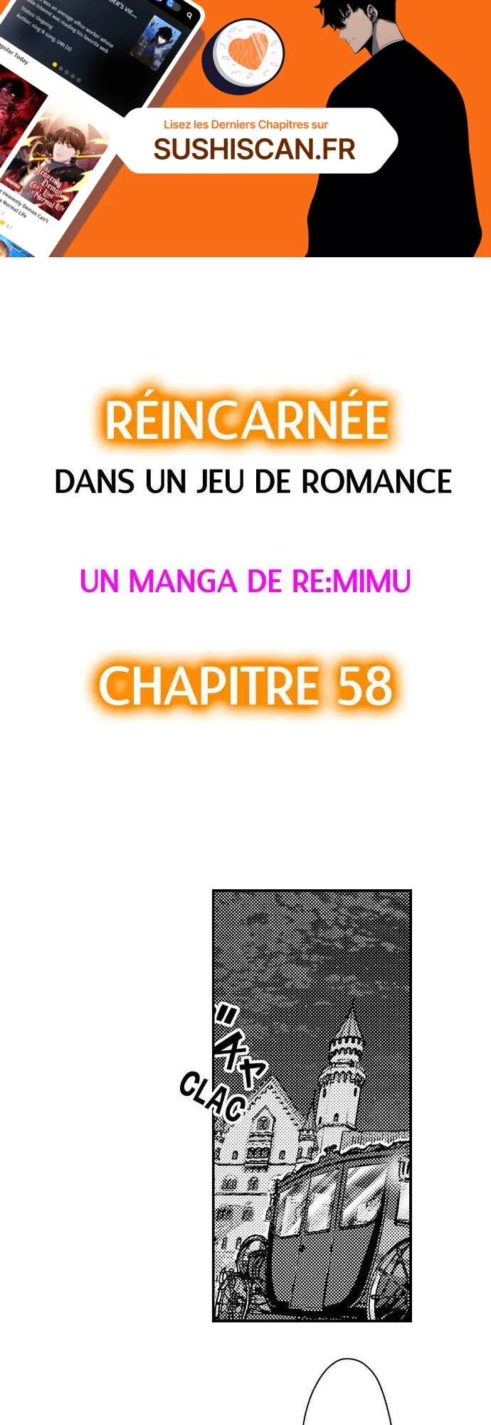 Lisez le dernier manga Réincarnée dans un jeu de romance Chapitre 58 sur SushiScan. Le manga Réincarnée dans un jeu de romance est toujours mis à jour sur SushiScan. N'oubliez pas de lire les autres mises à jour de manga. Une liste de collections de manga SushiScan se trouve dans le menu Liste de manga.
