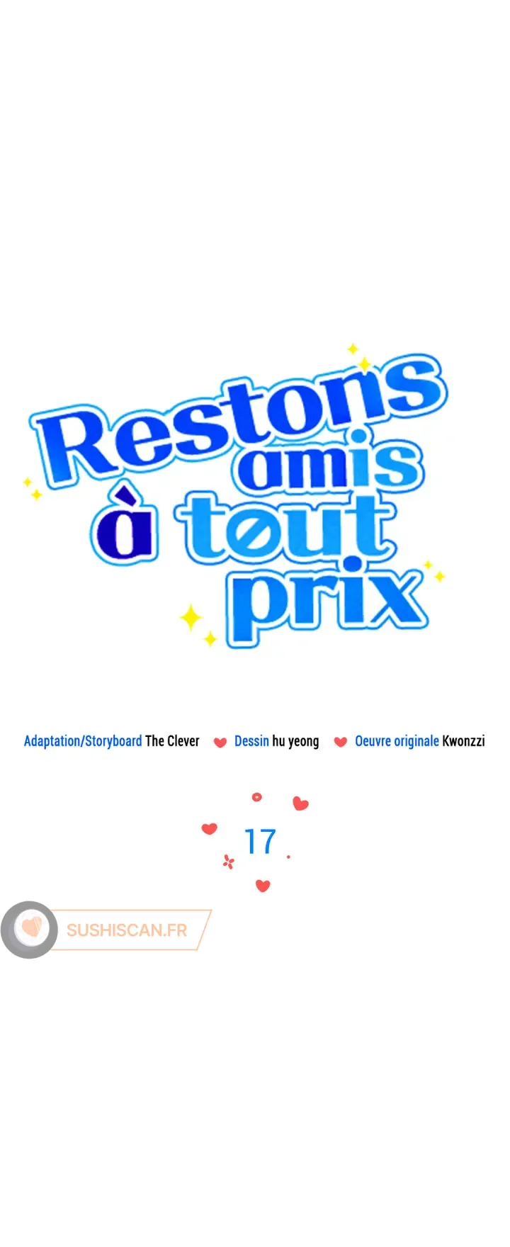 Lisez le dernier manga Restons amis à tout prix ! Chapitre 17 sur SushiScan. Le manga Restons amis à tout prix ! est toujours mis à jour sur SushiScan. N'oubliez pas de lire les autres mises à jour de manga. Une liste de collections de manga SushiScan se trouve dans le menu Liste de manga.