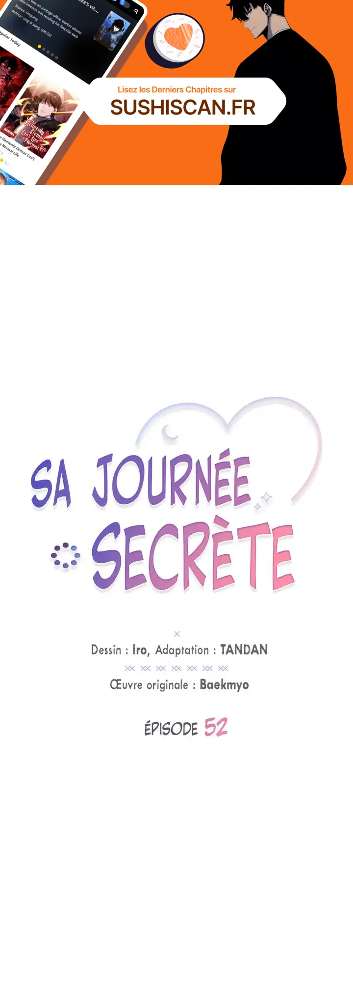 Lisez le dernier manga Sa journée secrète Chapitre 52 sur SushiScan. Le manga Sa journée secrète est toujours mis à jour sur SushiScan. N'oubliez pas de lire les autres mises à jour de manga. Une liste de collections de manga SushiScan se trouve dans le menu Liste de manga.