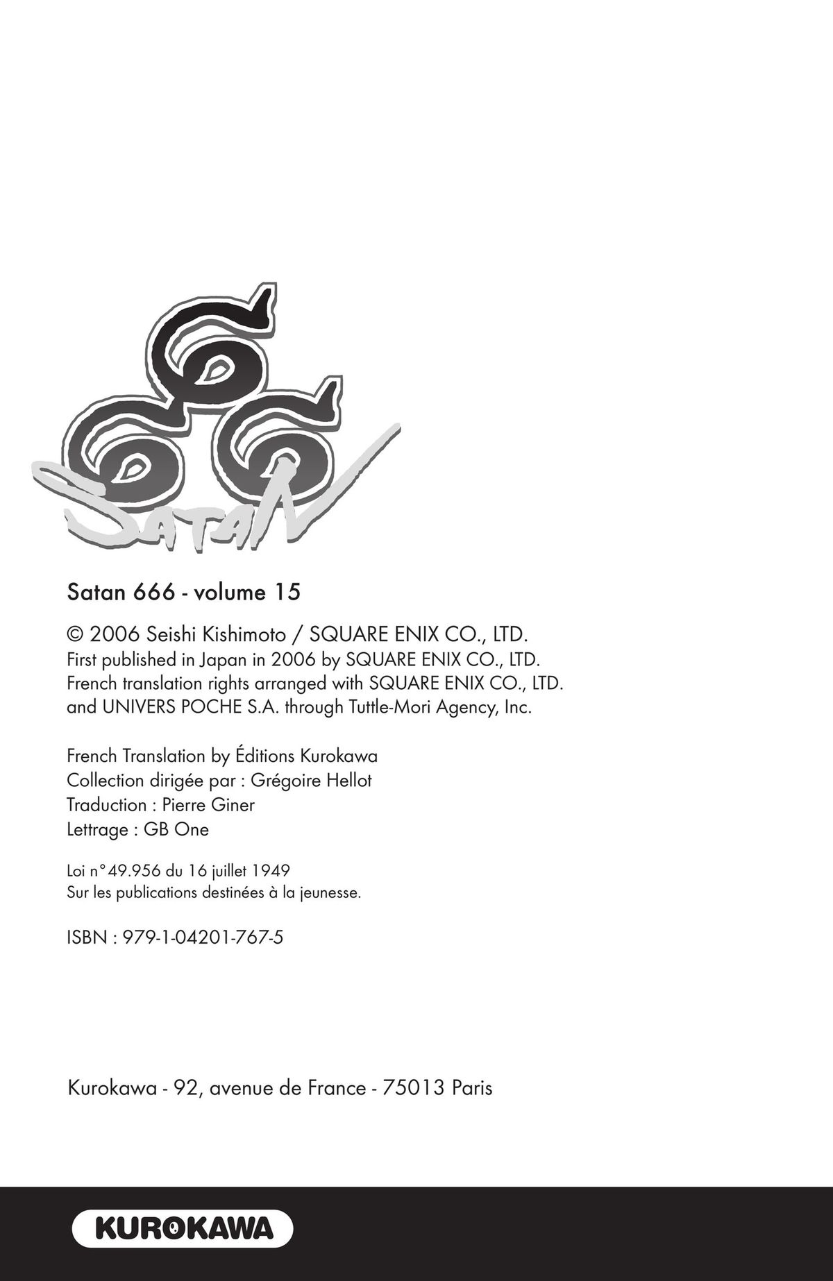 Lisez le dernier manga Satan 666 Tome 15 sur SushiScan. Le manga Satan 666 est toujours mis à jour sur SushiScan. N'oubliez pas de lire les autres mises à jour de manga. Une liste de collections de manga SushiScan se trouve dans le menu Liste de manga.