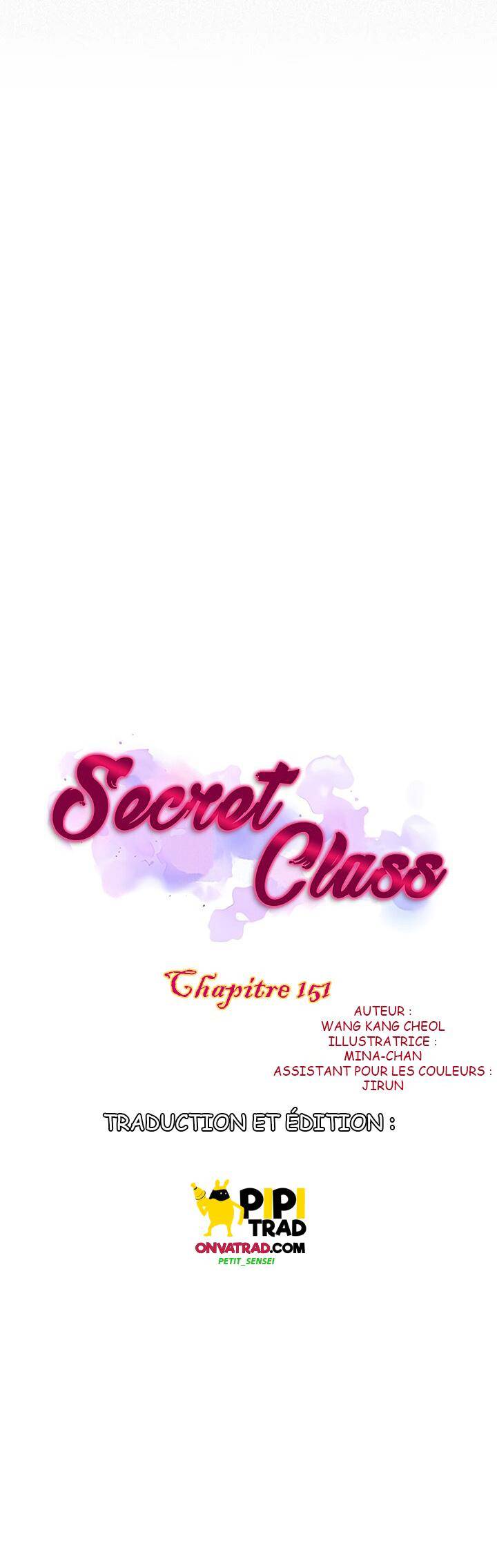 Lisez le dernier manga Secret Class Chapitre 151 sur SushiScan. Le manga Secret Class est toujours mis à jour sur SushiScan. N'oubliez pas de lire les autres mises à jour de manga. Une liste de collections de manga SushiScan se trouve dans le menu Liste de manga.
