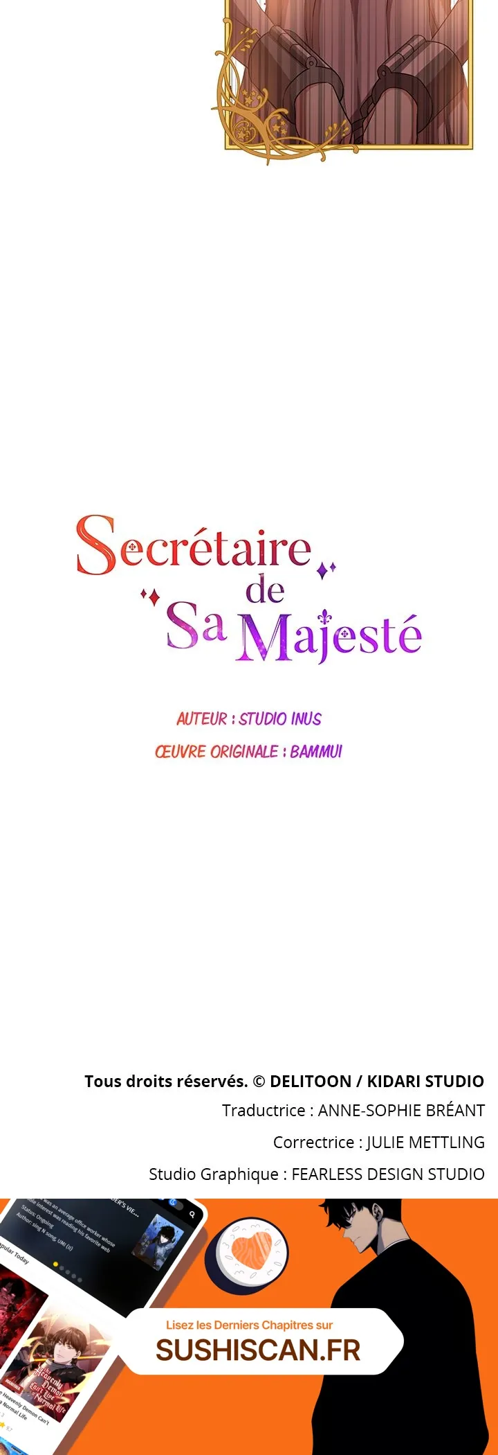 Lisez le dernier manga Secrétaire de Sa Majesté Chapitre 2 sur SushiScan. Le manga Secrétaire de Sa Majesté est toujours mis à jour sur SushiScan. N'oubliez pas de lire les autres mises à jour de manga. Une liste de collections de manga SushiScan se trouve dans le menu Liste de manga.