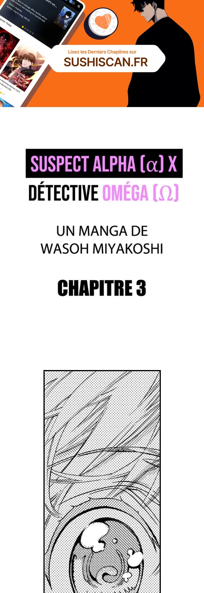 Lisez le dernier manga Suspect alpha (α) x Détective oméga (Ω) Chapitre 3 sur SushiScan. Le manga Suspect alpha (α) x Détective oméga (Ω) est toujours mis à jour sur SushiScan. N'oubliez pas de lire les autres mises à jour de manga. Une liste de collections de manga SushiScan se trouve dans le menu Liste de manga.