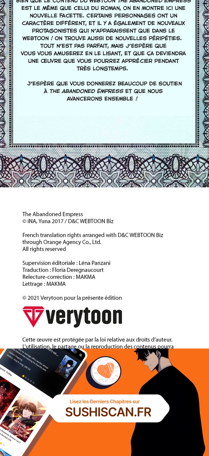 Lisez le dernier manga The Abandoned Empress Chapitre 0 sur SushiScan. Le manga The Abandoned Empress est toujours mis à jour sur SushiScan. N'oubliez pas de lire les autres mises à jour de manga. Une liste de collections de manga SushiScan se trouve dans le menu Liste de manga.