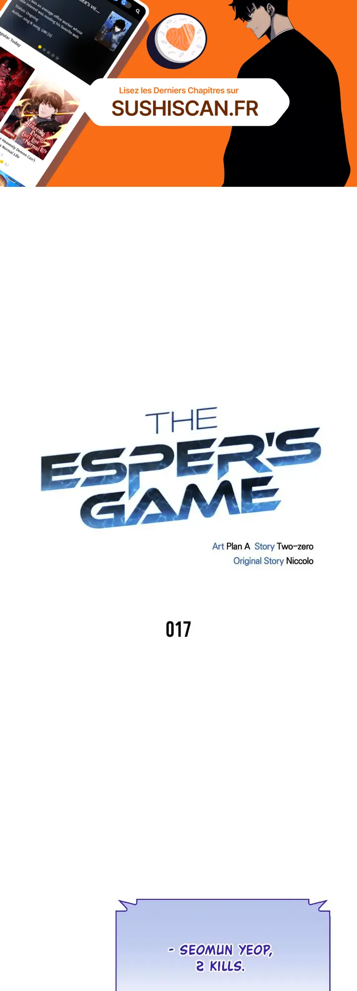 Lisez le dernier manga The Esper’s Game Chapitre 17 sur SushiScan. Le manga The Esper’s Game est toujours mis à jour sur SushiScan. N'oubliez pas de lire les autres mises à jour de manga. Une liste de collections de manga SushiScan se trouve dans le menu Liste de manga.