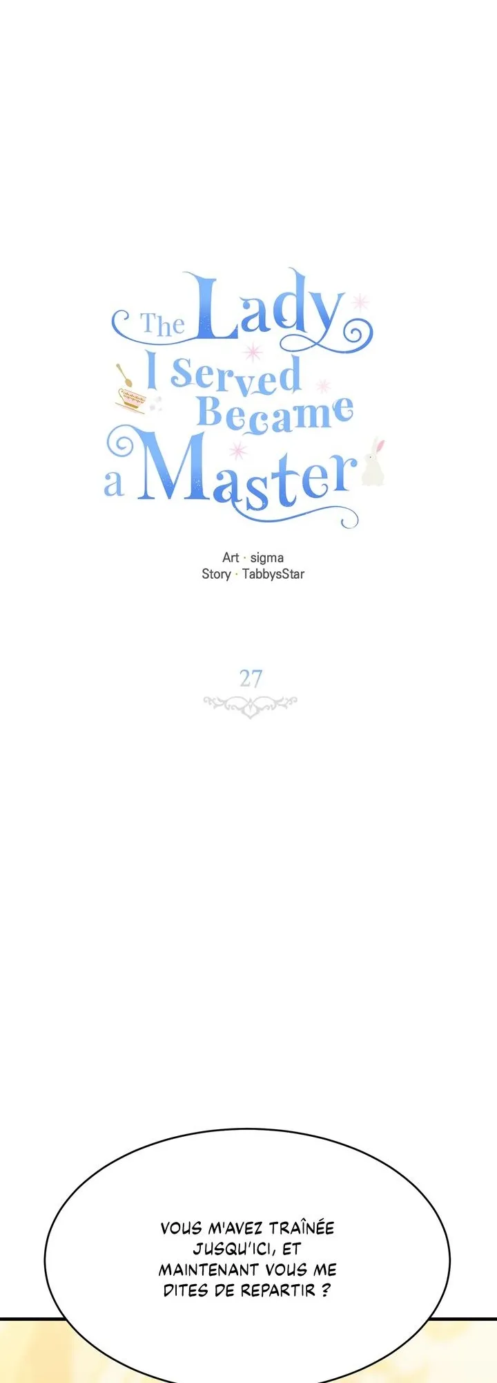 Lisez le dernier manga The Lady I Served Became a Master Chapitre 27 sur SushiScan. Le manga The Lady I Served Became a Master est toujours mis à jour sur SushiScan. N'oubliez pas de lire les autres mises à jour de manga. Une liste de collections de manga SushiScan se trouve dans le menu Liste de manga.