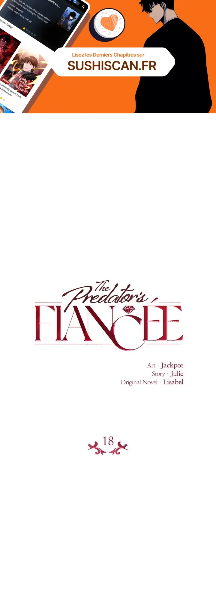 Lisez le dernier manga The Predator’s Fiancée Chapitre 18 sur SushiScan. Le manga The Predator’s Fiancée est toujours mis à jour sur SushiScan. N'oubliez pas de lire les autres mises à jour de manga. Une liste de collections de manga SushiScan se trouve dans le menu Liste de manga.