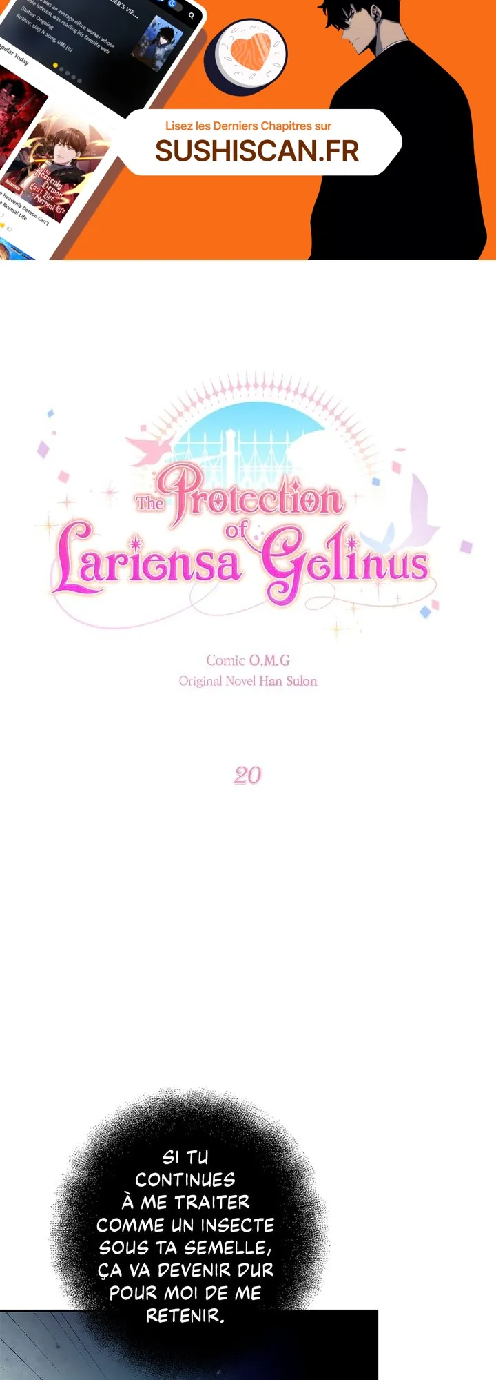 Lisez le dernier manga The Protection of Lariensa Gelinus Chapitre 20 sur SushiScan. Le manga The Protection of Lariensa Gelinus est toujours mis à jour sur SushiScan. N'oubliez pas de lire les autres mises à jour de manga. Une liste de collections de manga SushiScan se trouve dans le menu Liste de manga.