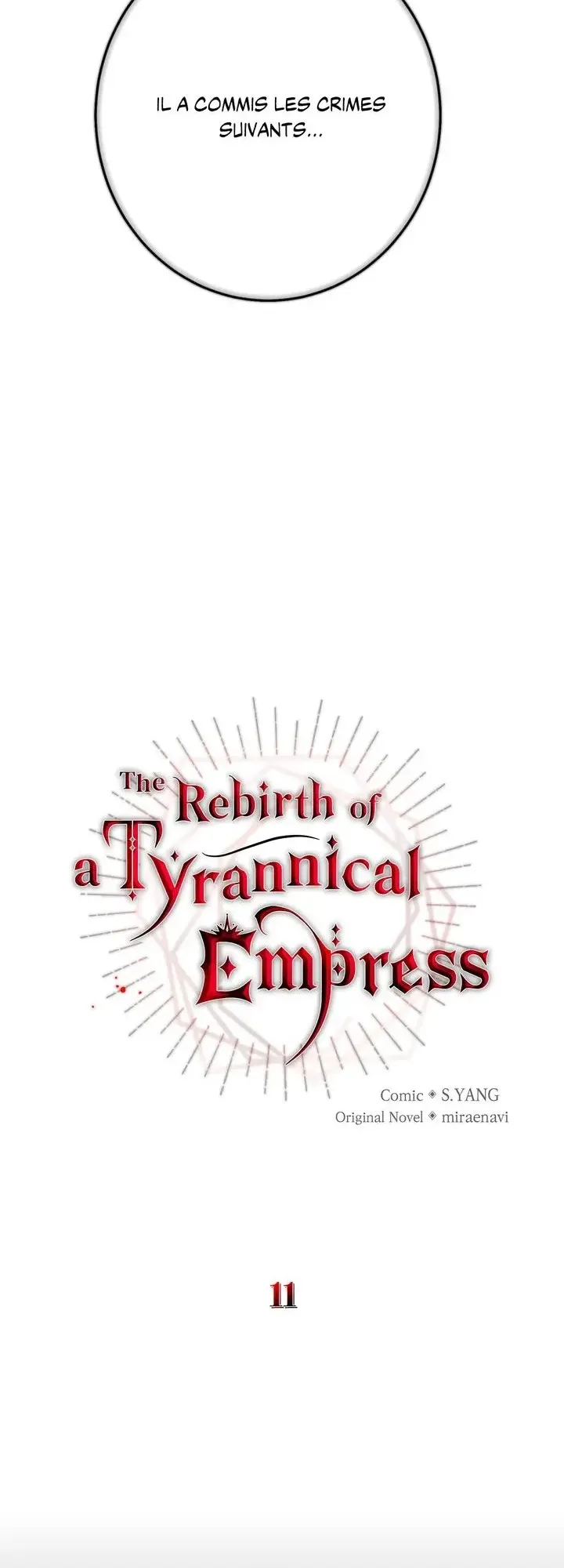 Lisez le dernier manga The Rebirth of a Tyrannical Empress Chapitre 11 sur SushiScan. Le manga The Rebirth of a Tyrannical Empress est toujours mis à jour sur SushiScan. N'oubliez pas de lire les autres mises à jour de manga. Une liste de collections de manga SushiScan se trouve dans le menu Liste de manga.