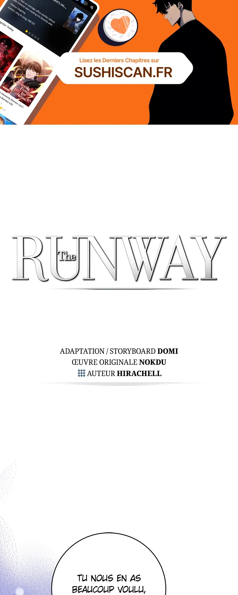 Lisez le dernier manga The Runway Chapitre 108 sur SushiScan. Le manga The Runway est toujours mis à jour sur SushiScan. N'oubliez pas de lire les autres mises à jour de manga. Une liste de collections de manga SushiScan se trouve dans le menu Liste de manga.