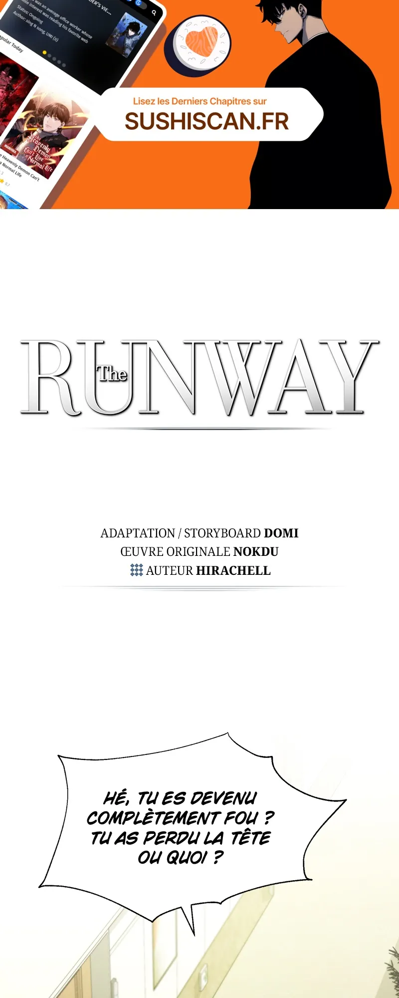 Lisez le dernier manga The Runway Chapitre 5 sur SushiScan. Le manga The Runway est toujours mis à jour sur SushiScan. N'oubliez pas de lire les autres mises à jour de manga. Une liste de collections de manga SushiScan se trouve dans le menu Liste de manga.