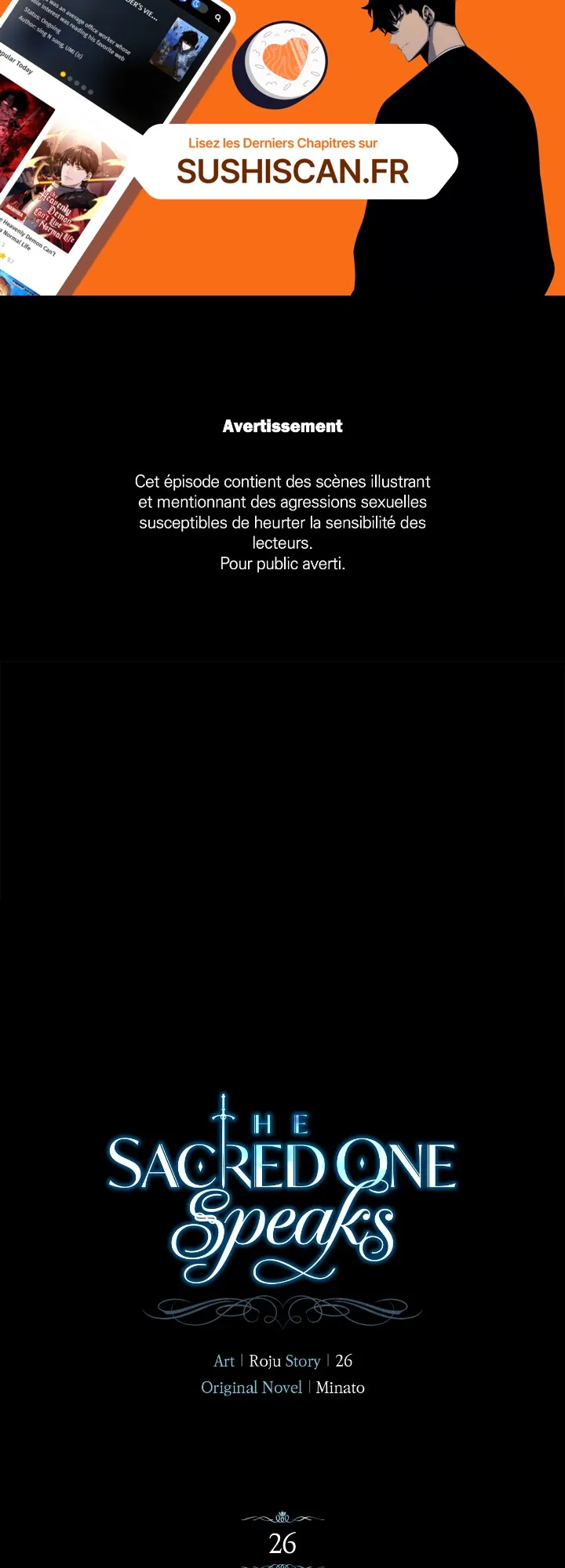 Lisez le dernier manga The Sacred One Speaks Chapitre 26 sur SushiScan. Le manga The Sacred One Speaks est toujours mis à jour sur SushiScan. N'oubliez pas de lire les autres mises à jour de manga. Une liste de collections de manga SushiScan se trouve dans le menu Liste de manga.