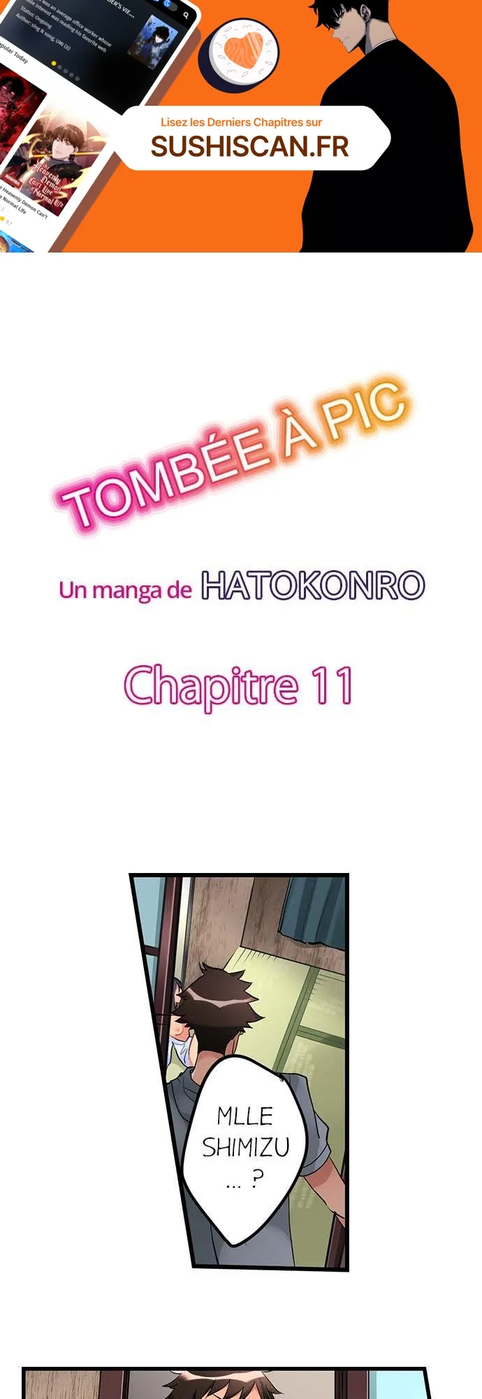 Lisez le dernier manga Tombée à pic Chapitre 11 sur SushiScan. Le manga Tombée à pic est toujours mis à jour sur SushiScan. N'oubliez pas de lire les autres mises à jour de manga. Une liste de collections de manga SushiScan se trouve dans le menu Liste de manga.