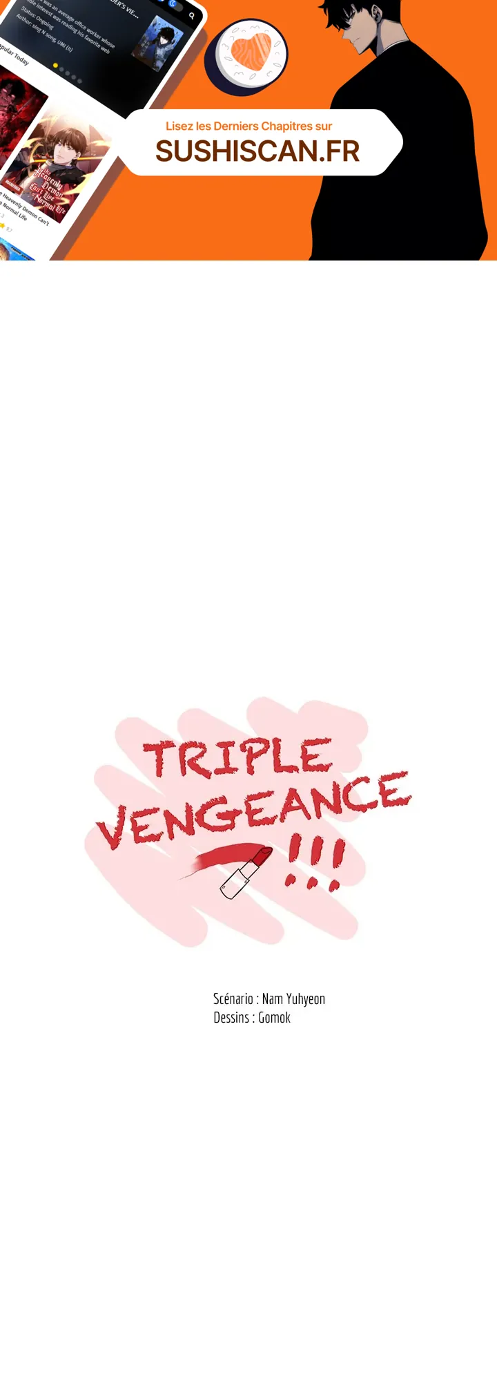 Lisez le dernier manga Triple Vengeance !!! Chapitre 12 sur SushiScan. Le manga Triple Vengeance !!! est toujours mis à jour sur SushiScan. N'oubliez pas de lire les autres mises à jour de manga. Une liste de collections de manga SushiScan se trouve dans le menu Liste de manga.