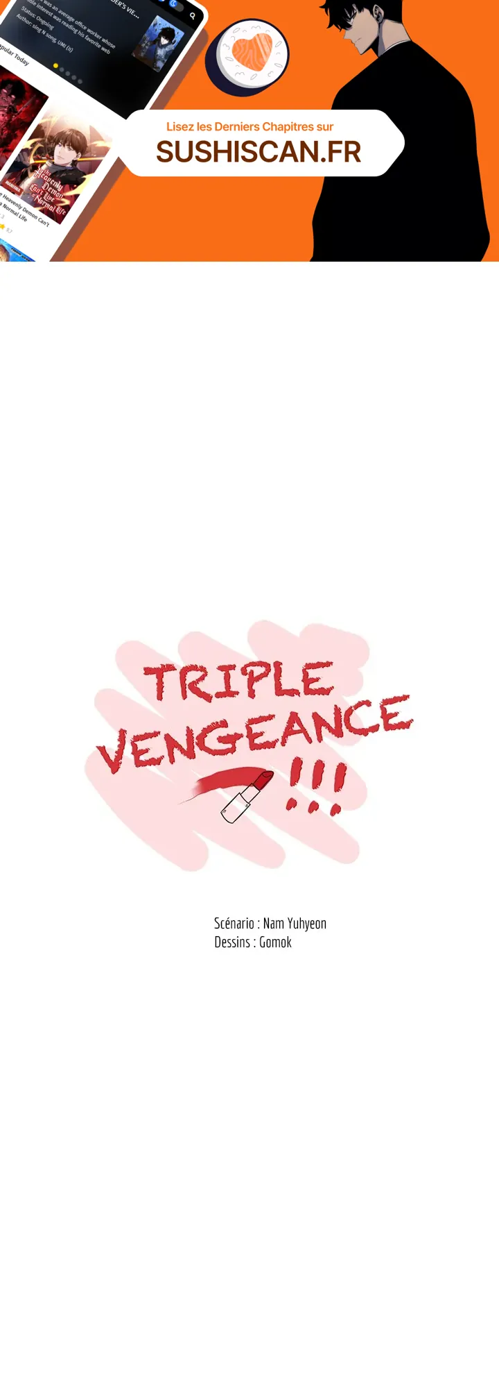 Lisez le dernier manga Triple Vengeance !!! Chapitre 56 sur SushiScan. Le manga Triple Vengeance !!! est toujours mis à jour sur SushiScan. N'oubliez pas de lire les autres mises à jour de manga. Une liste de collections de manga SushiScan se trouve dans le menu Liste de manga.