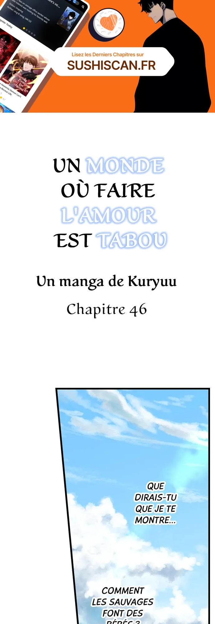 Lisez le dernier manga Un monde où faire l’amour est tabou Chapitre 46 sur SushiScan. Le manga Un monde où faire l’amour est tabou est toujours mis à jour sur SushiScan. N'oubliez pas de lire les autres mises à jour de manga. Une liste de collections de manga SushiScan se trouve dans le menu Liste de manga.