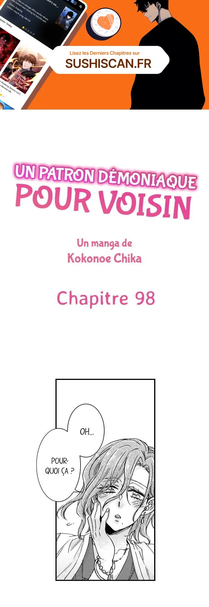 Lisez le dernier manga Un patron démoniaque pour voisin Chapitre 98 sur SushiScan. Le manga Un patron démoniaque pour voisin est toujours mis à jour sur SushiScan. N'oubliez pas de lire les autres mises à jour de manga. Une liste de collections de manga SushiScan se trouve dans le menu Liste de manga.