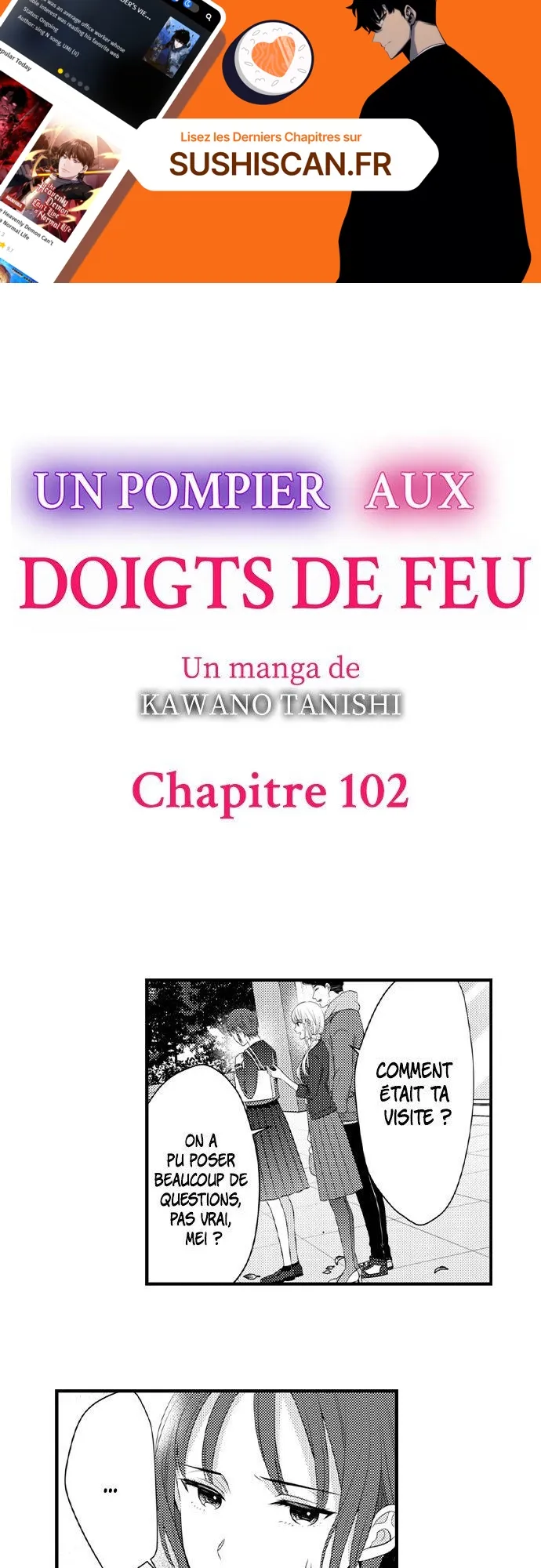 Lisez le dernier manga Un pompier aux doigts de feu Chapitre 102 sur SushiScan. Le manga Un pompier aux doigts de feu est toujours mis à jour sur SushiScan. N'oubliez pas de lire les autres mises à jour de manga. Une liste de collections de manga SushiScan se trouve dans le menu Liste de manga.
