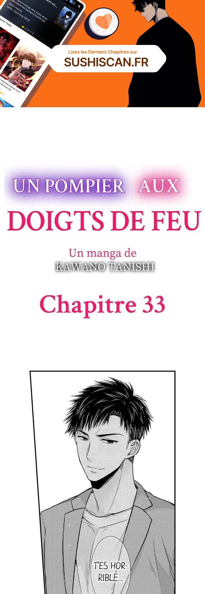 Lisez le dernier manga Un pompier aux doigts de feu Chapitre 33 sur SushiScan. Le manga Un pompier aux doigts de feu est toujours mis à jour sur SushiScan. N'oubliez pas de lire les autres mises à jour de manga. Une liste de collections de manga SushiScan se trouve dans le menu Liste de manga.