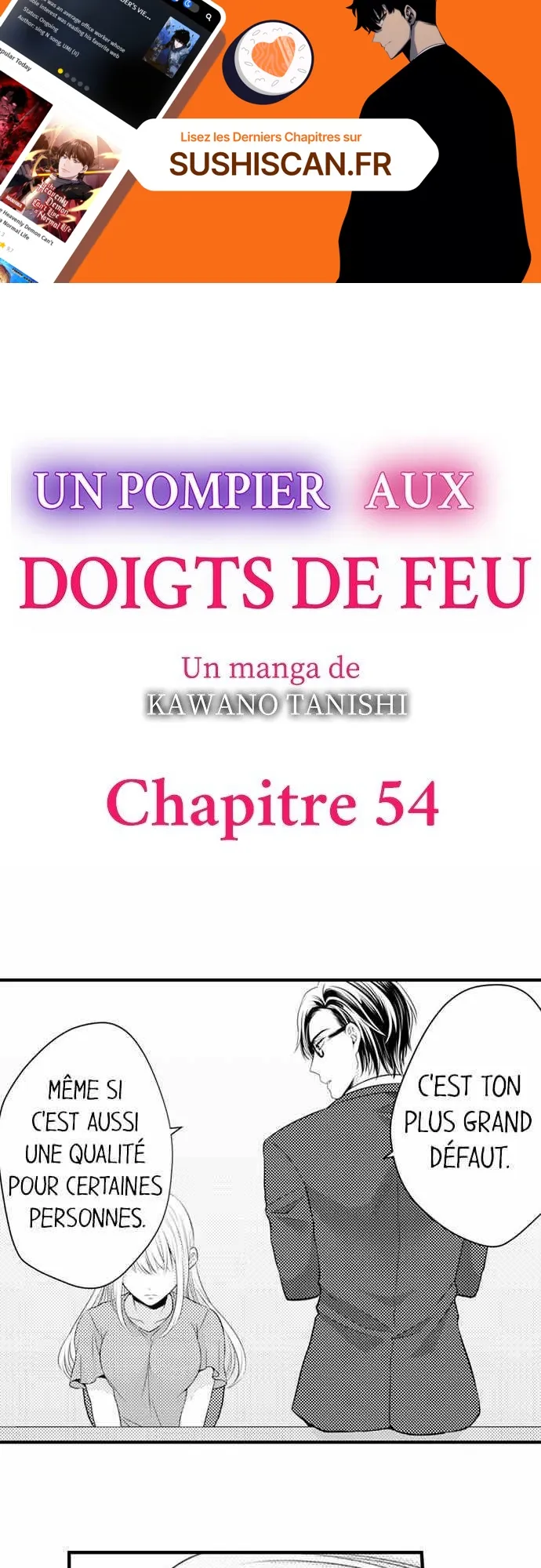 Lisez le dernier manga Un pompier aux doigts de feu Chapitre 54 sur SushiScan. Le manga Un pompier aux doigts de feu est toujours mis à jour sur SushiScan. N'oubliez pas de lire les autres mises à jour de manga. Une liste de collections de manga SushiScan se trouve dans le menu Liste de manga.