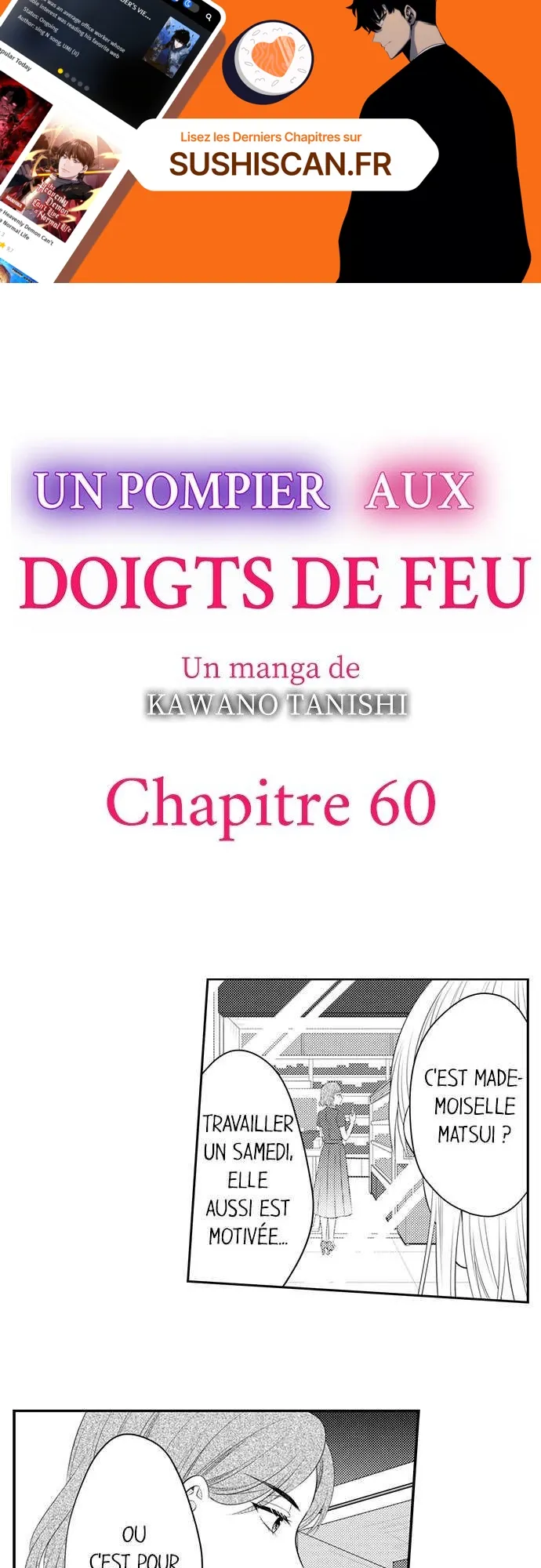 Lisez le dernier manga Un pompier aux doigts de feu Chapitre 60 sur SushiScan. Le manga Un pompier aux doigts de feu est toujours mis à jour sur SushiScan. N'oubliez pas de lire les autres mises à jour de manga. Une liste de collections de manga SushiScan se trouve dans le menu Liste de manga.