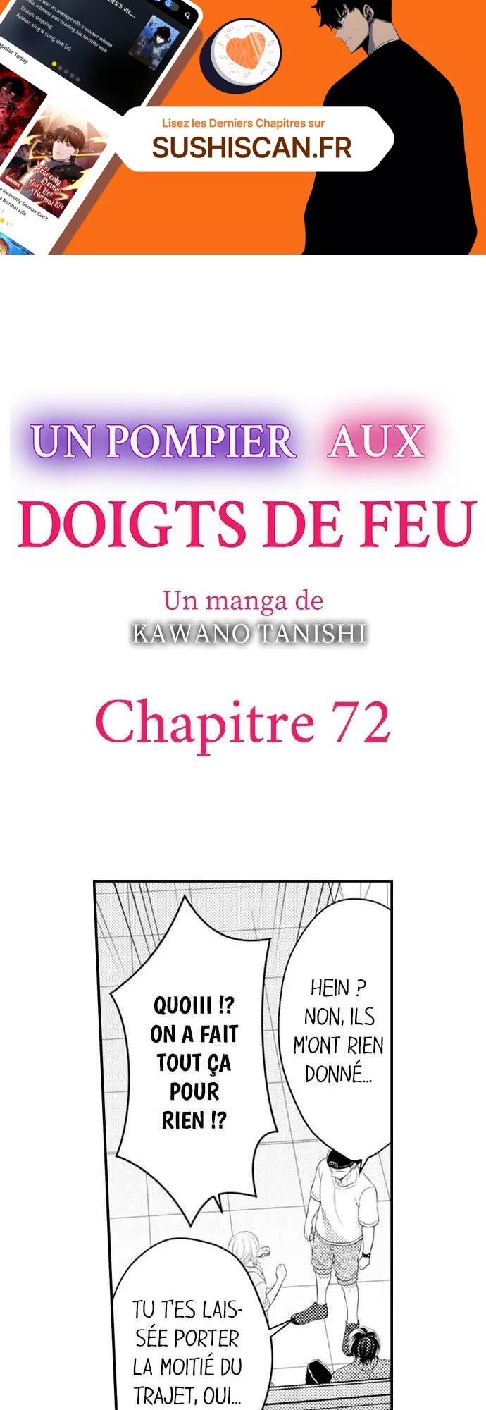 Lisez le dernier manga Un pompier aux doigts de feu Chapitre 72 sur SushiScan. Le manga Un pompier aux doigts de feu est toujours mis à jour sur SushiScan. N'oubliez pas de lire les autres mises à jour de manga. Une liste de collections de manga SushiScan se trouve dans le menu Liste de manga.