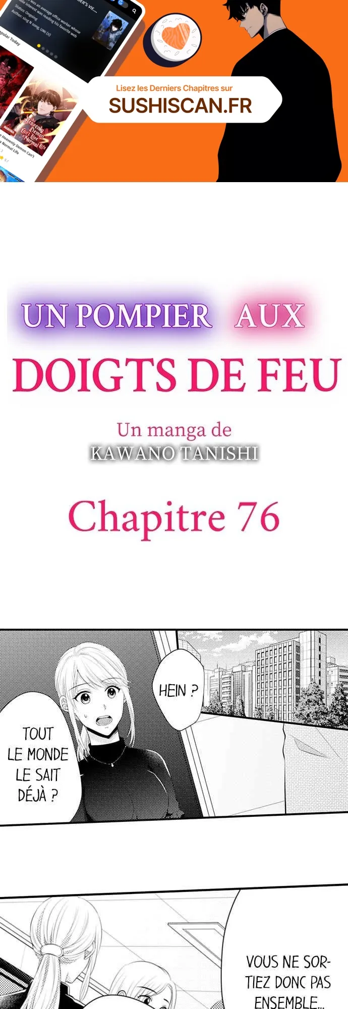 Lisez le dernier manga Un pompier aux doigts de feu Chapitre 76 sur SushiScan. Le manga Un pompier aux doigts de feu est toujours mis à jour sur SushiScan. N'oubliez pas de lire les autres mises à jour de manga. Une liste de collections de manga SushiScan se trouve dans le menu Liste de manga.