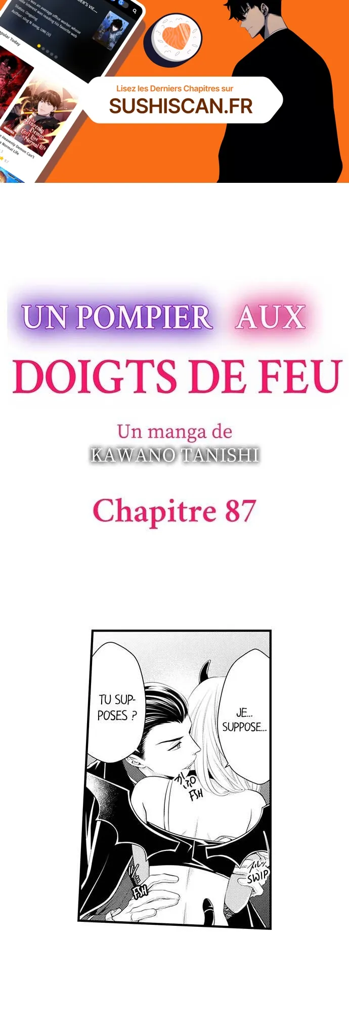 Lisez le dernier manga Un pompier aux doigts de feu Chapitre 87 sur SushiScan. Le manga Un pompier aux doigts de feu est toujours mis à jour sur SushiScan. N'oubliez pas de lire les autres mises à jour de manga. Une liste de collections de manga SushiScan se trouve dans le menu Liste de manga.