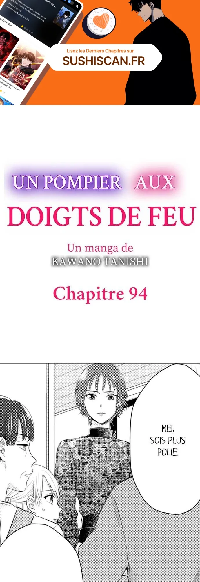 Lisez le dernier manga Un pompier aux doigts de feu Chapitre 94 sur SushiScan. Le manga Un pompier aux doigts de feu est toujours mis à jour sur SushiScan. N'oubliez pas de lire les autres mises à jour de manga. Une liste de collections de manga SushiScan se trouve dans le menu Liste de manga.