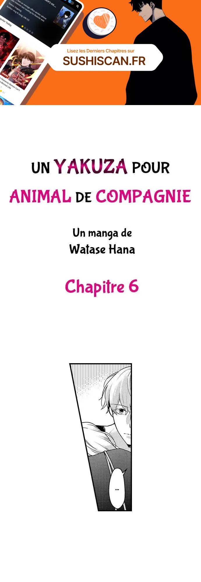 Lisez le dernier manga Un yakuza pour animal de compagnie Chapitre 6 sur SushiScan. Le manga Un yakuza pour animal de compagnie est toujours mis à jour sur SushiScan. N'oubliez pas de lire les autres mises à jour de manga. Une liste de collections de manga SushiScan se trouve dans le menu Liste de manga.