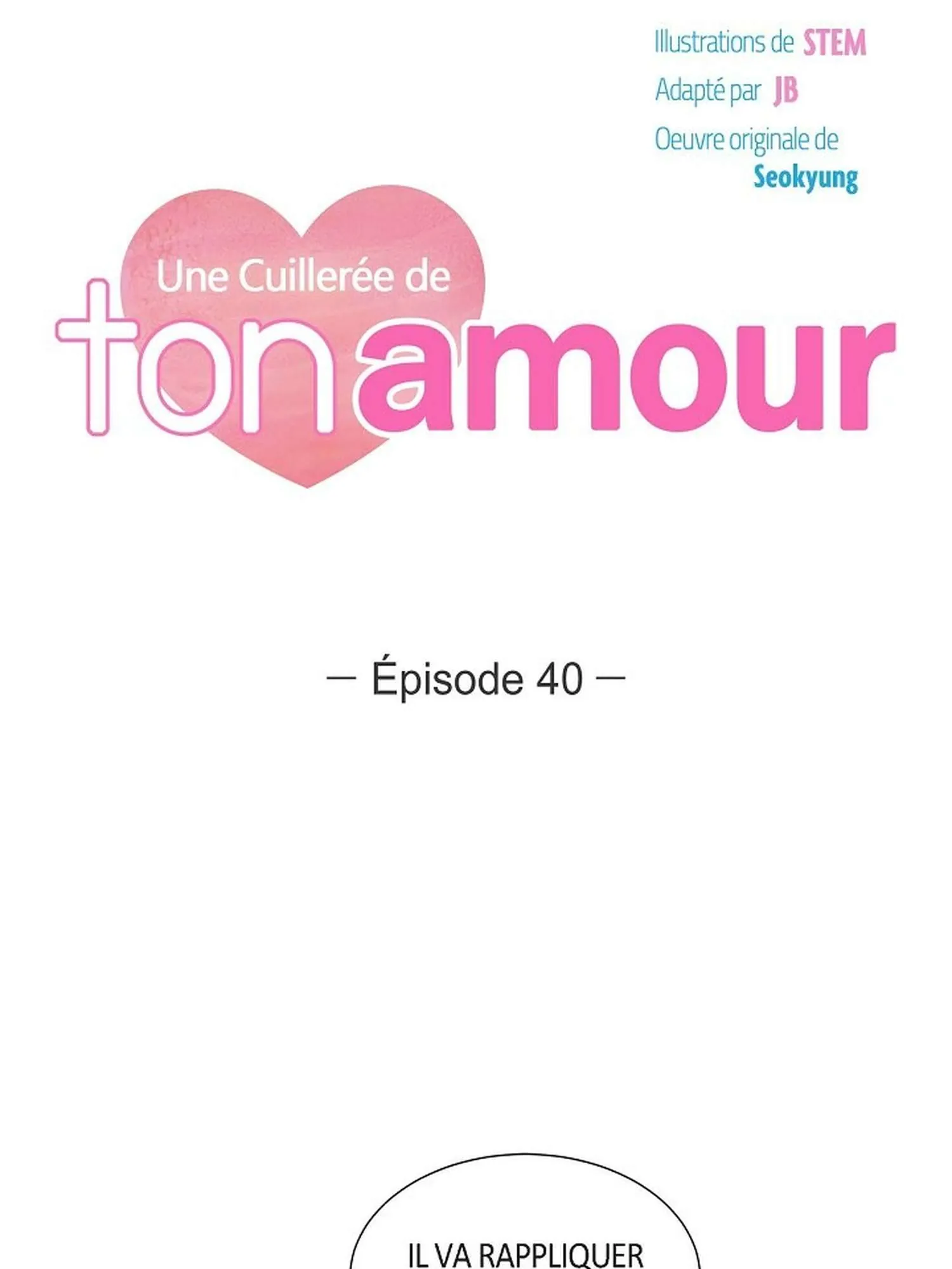 Lisez le dernier manga Une cuillerée de ton amour Chapitre 40 sur SushiScan. Le manga Une cuillerée de ton amour est toujours mis à jour sur SushiScan. N'oubliez pas de lire les autres mises à jour de manga. Une liste de collections de manga SushiScan se trouve dans le menu Liste de manga.