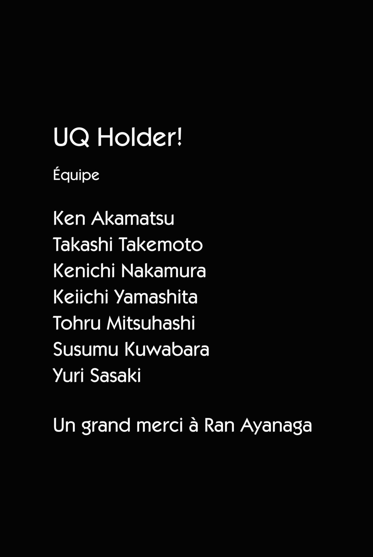 Lisez le dernier manga UQ Holder! Tome 4 sur SushiScan. Le manga UQ Holder! est toujours mis à jour sur SushiScan. N'oubliez pas de lire les autres mises à jour de manga. Une liste de collections de manga SushiScan se trouve dans le menu Liste de manga.