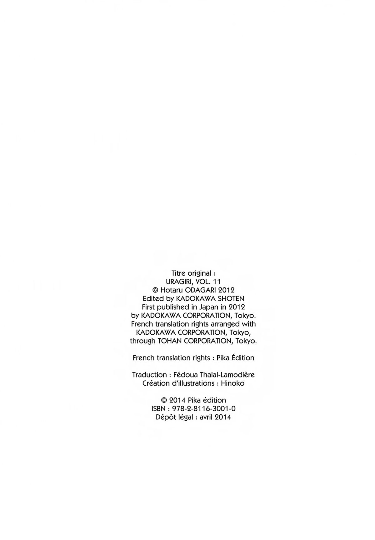Tous les volumes sont dans Uragiri – La trahison connaît mon nom