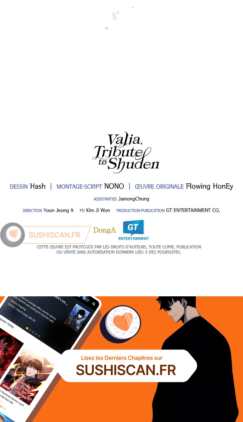 Lisez le dernier manga Valia, Tribute to Shuden Chapitre 25 sur SushiScan. Le manga Valia, Tribute to Shuden est toujours mis à jour sur SushiScan. N'oubliez pas de lire les autres mises à jour de manga. Une liste de collections de manga SushiScan se trouve dans le menu Liste de manga.