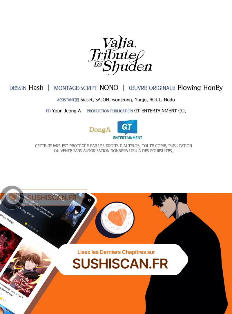 Lisez le dernier manga Valia, Tribute to Shuden Chapitre 47 sur SushiScan. Le manga Valia, Tribute to Shuden est toujours mis à jour sur SushiScan. N'oubliez pas de lire les autres mises à jour de manga. Une liste de collections de manga SushiScan se trouve dans le menu Liste de manga.