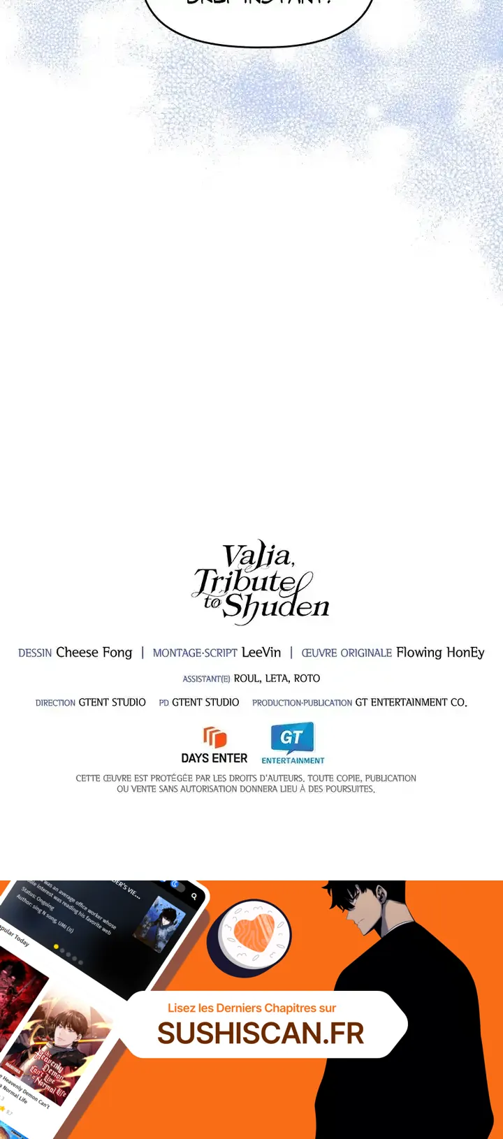 Lisez le dernier manga Valia, Tribute to Shuden Chapitre 80 sur SushiScan. Le manga Valia, Tribute to Shuden est toujours mis à jour sur SushiScan. N'oubliez pas de lire les autres mises à jour de manga. Une liste de collections de manga SushiScan se trouve dans le menu Liste de manga.