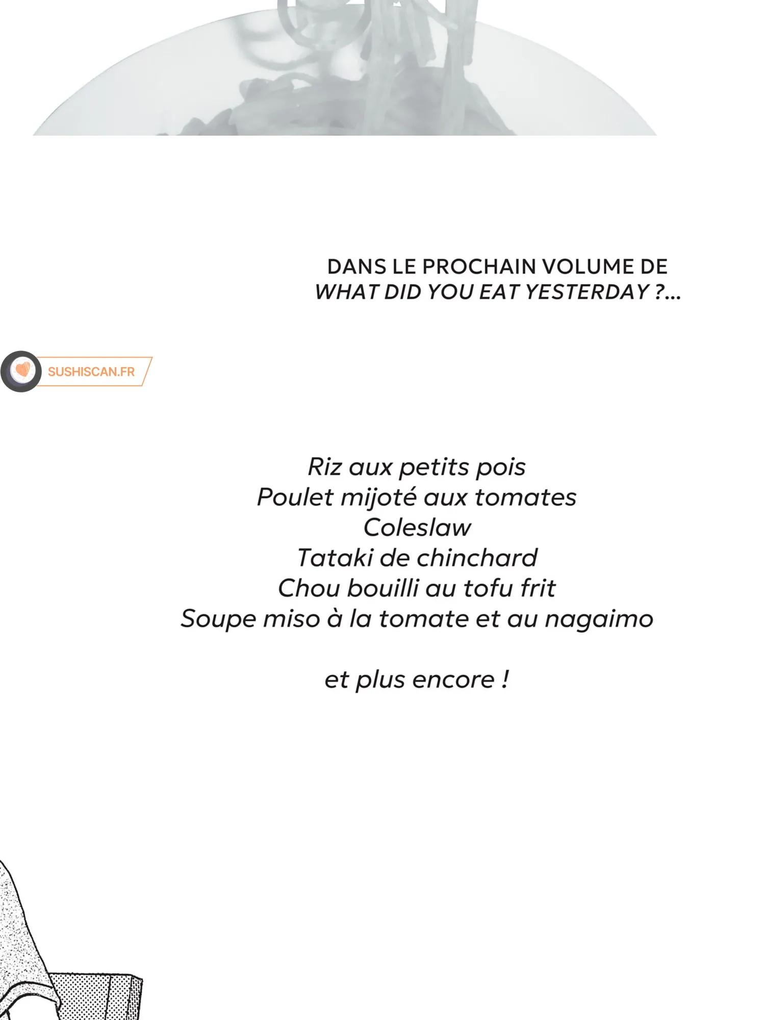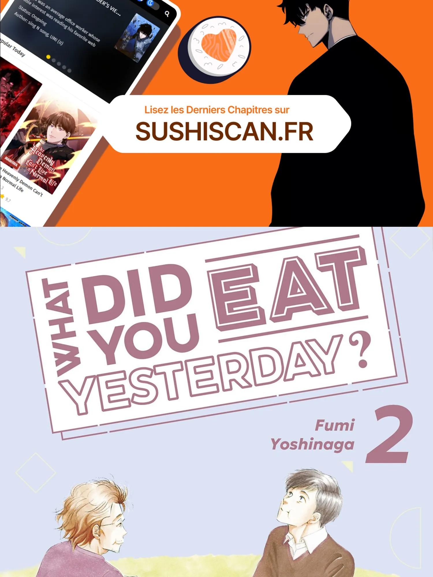 Lisez le dernier manga What Did You Eat Yesterday? Tome 2 sur SushiScan. Le manga What Did You Eat Yesterday? est toujours mis à jour sur SushiScan. N'oubliez pas de lire les autres mises à jour de manga. Une liste de collections de manga SushiScan se trouve dans le menu Liste de manga.