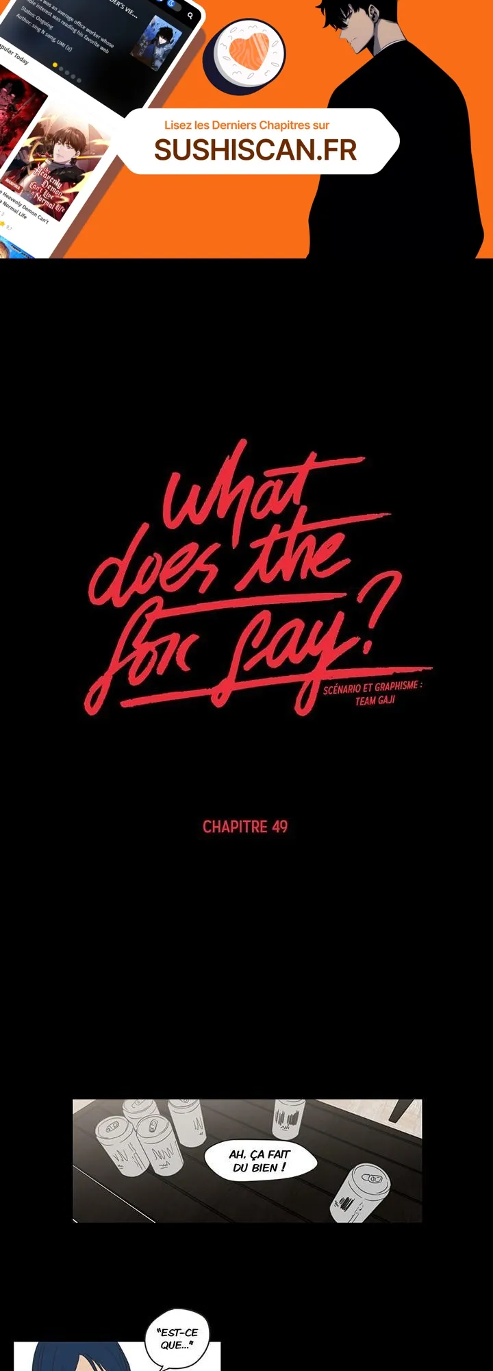 Lisez le dernier manga What Does the Fox Say? Chapitre 49 sur SushiScan. Le manga What Does the Fox Say? est toujours mis à jour sur SushiScan. N'oubliez pas de lire les autres mises à jour de manga. Une liste de collections de manga SushiScan se trouve dans le menu Liste de manga.