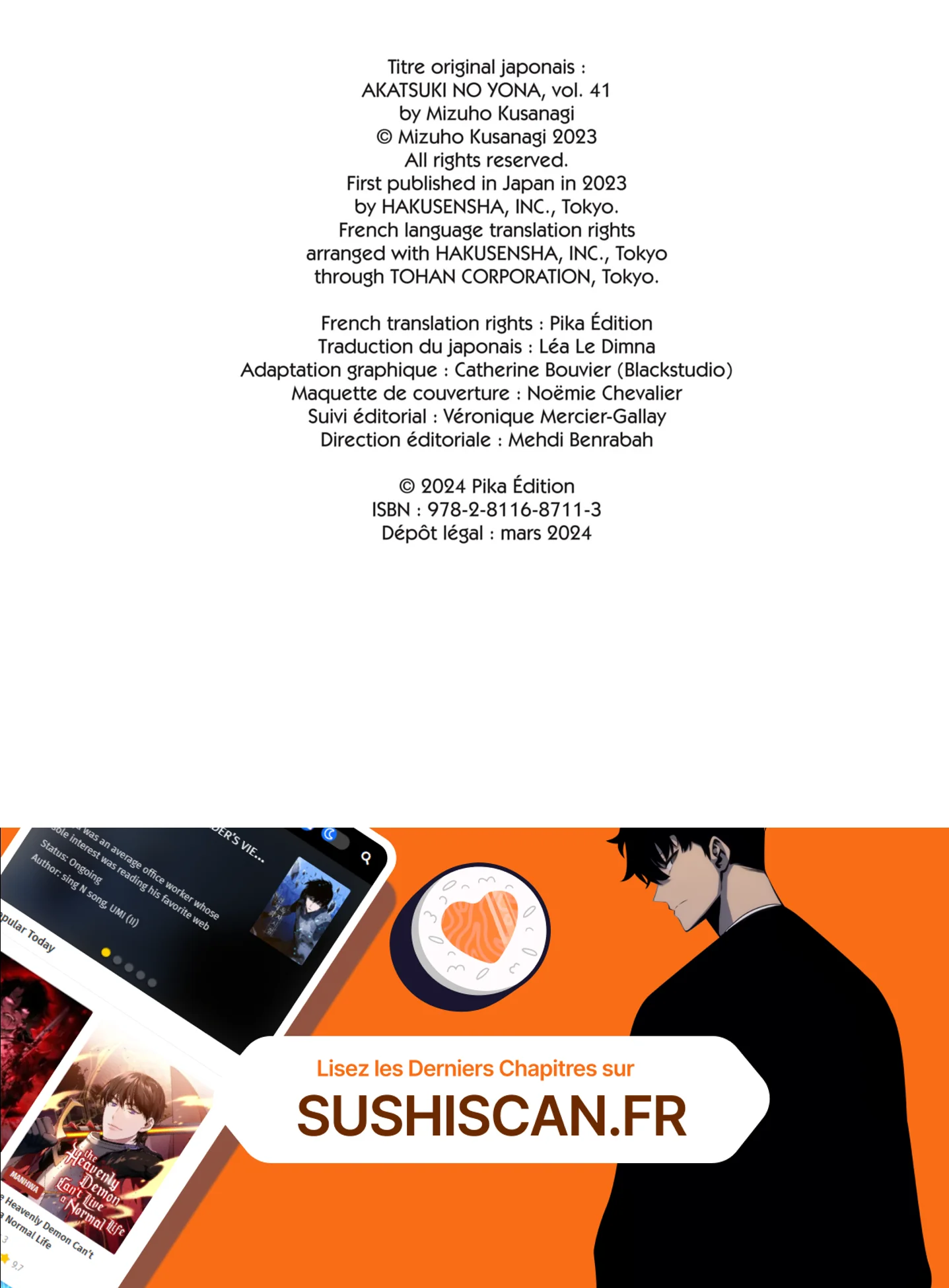 Lisez le dernier manga Yona, princesse de l’aube Tome 41 sur SushiScan. Le manga Yona, princesse de l’aube est toujours mis à jour sur SushiScan. N'oubliez pas de lire les autres mises à jour de manga. Une liste de collections de manga SushiScan se trouve dans le menu Liste de manga.